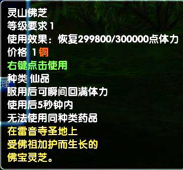 生长在雷音寺圣地上,受到佛祖加护而生长的灵山佛芝,吸收了日月之精华,集合了天地之灵气,吃了它以后可以瞬间补充体力,让你容光焕发,充满动力。