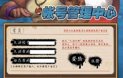 2、由“帐号管理中心”填写各自的久游通行证,并点击“登陆”即可进入激活页面。