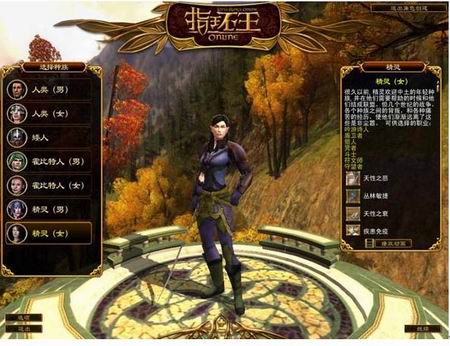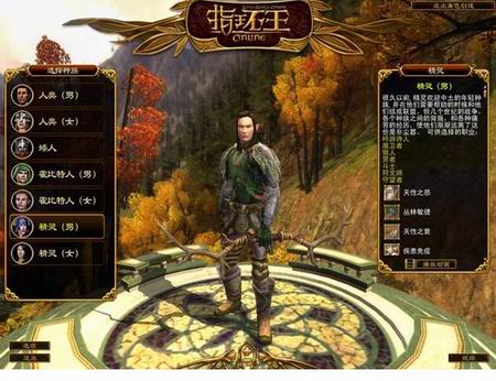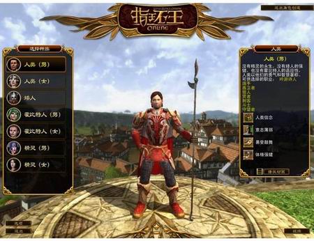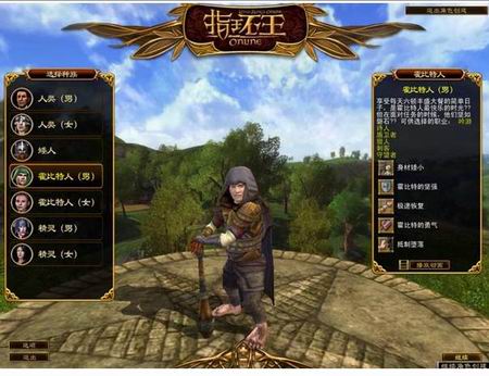 游戏顺利启动,我们先看看建立人物选单。目前开放了4个种族,分别是人类、矮人、霍比特人和精灵,其中有一点不太明白,为什么4个种族里,矮人族没有女人……