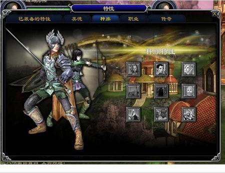 在《指环王》中,奥兰多.布鲁姆饰演的精灵弓箭手莱格拉斯曾让所有女性为之疯狂,这个角色也使得奥兰多.布鲁姆迅速上位,成为一代青春偶像。笔者也对他饰演的这个精灵弓箭手情有独钟,没有犹豫,第一个角色就是精灵弓箭手了。稍微有点遗憾,角色的头发颜色不能选用电影人物的金黄色,笔者就待着这点遗憾进入了游戏。