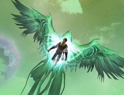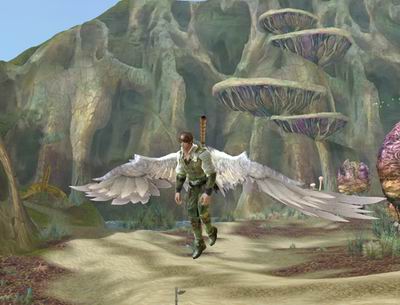 当你的人物在10级左右的时候,就可以轻松地完成转职任务。从而从新手地图前往更辽阔的世界进行探险。而你真正的翅膀也在这个时候出现。切换至飞行状态后,翅膀自动打开,之后便能自由飞翔。