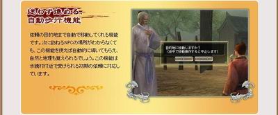 这是一个引导玩家自动移动到任务目的地的功能。如果不明白下个阶段需要拜访什么NPC,那么使用这个功能将可以自动的得到引导。该功能对应水镜村附近可以接受到的初期任务。