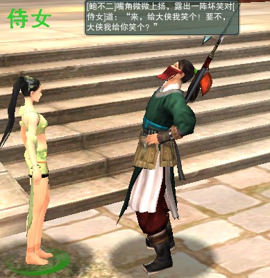《剑网3》中的女子个个身姿婀娜,线条妩媚,不由得使人心性浮动,血流一处。这时,远处走来一位女子,虽然只是侍女,但也是美艳不可方物,我们的泡妞之旅就从这里开始……
