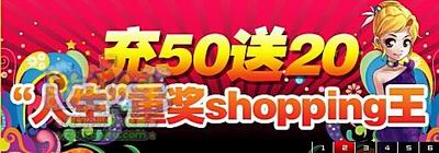 各位购物达人、血拼狂人注意啦!新一轮的“人生”Shopping王决战已经开始咯!只要在活动期间购物达到一定金额,就有机会获得丰富的赠币返还,而且在活动结束后,“人生”还将给予新诞生的shopping王拉风座驾的奖励,绝对限量版哦!想要就赶快行动咯!