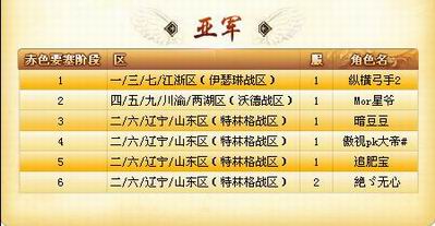 获得亚军的六位玩家每人都将获得本次大赛送出的亚军奖励: +12黄金装备一套(包括黄金防具8件及武器2把)。