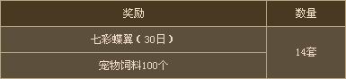 ※ 七彩蝶翼(30日):绚丽的七彩蝶翼,佩戴后攻击等级增加1级、攻击速度增加10%、意念属性攻击力增加30点、穿透力增加3点、向人族怪物追加10%伤害。
