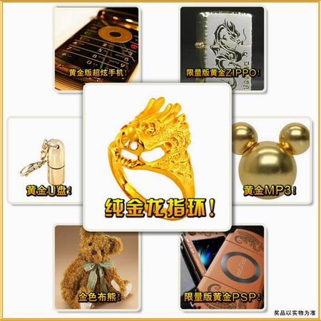 还有,还有...从5月22日开始,到官方指定论坛版面提交游戏体验报告,更有机会赢取纯金龙指环、黄金版手机、限量版zippo等超值黄金大奖!