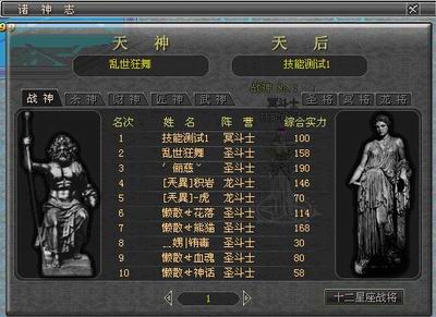 “诸神志”排行榜(点击游戏画面右上方的“诸神志”按钮打开诸神志面板。)