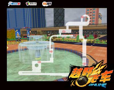 (6)环形立交桥。这里的环形上下坡路线,是玩家使用连续漂移小喷的绝佳地点。与此连接的障碍赛道,也可以让玩家感受到完全不同的行驶体验。