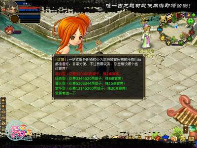 我们来看看《梦幻古龙》里的婚宴预定流程:预订婚宴酒席的时间为当天的9:00-23:00;婚礼每半个小时举行一次,如果某一时段的婚宴被别的新人抢先预定的话,那就只能选择别的时间段咯!可以预见的是,刚刚开放的结婚系统必然市场反映良好,新人们踊跃预约,但场地有限,绝大多数人的婚宴不得不大幅度延期。加油吧!朋友们!