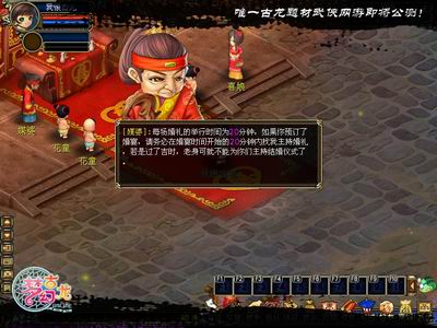 到达婚礼时间后,玩家至3线找红娘即可进入婚宴地图。千万要记住的是,生意兴隆的媒婆只会等你20分钟,逾时不候哦!