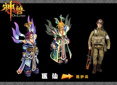 医护兵的特点与游戏中的巫仙、医仙不约而同,巫仙更像第一种,能治疗和复活,还擅长各种增益法术,同时能对敌人施加负面状态,造成较大伤害。医仙像第二种医护兵,治疗能力是最最强大的,是队伍中最最不可或缺的角色,拥有起死回生、反败为胜的巨大能力。对队友来说,它们无异于天使;但对敌人来说,它们却是恶魔。毒咒、衰老、雷光……让敌人无可逃避!