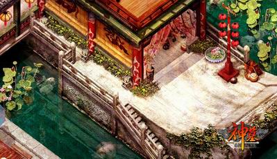 新款游戏引擎在图形制作中有一个单独的矩点系统,可以修饰游戏场景中的每一处细节。如上图中彩布的纹理,地面上的大理石材质,以及边角局部细节的渐变颜色,矩点系统都可以逐点放大修饰完美,再使用3D预加载技术,就连水中的倒影也显得极为真实。目前市面上还没有一款2D游戏能够实现这样的视觉效果。