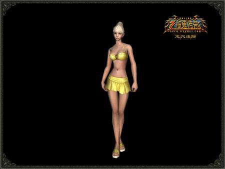 裙式设计的比基尼优雅甜美,嫩黄的色彩呼出青春之感,在展现女性完美曲线之余,更不失可爱因素。如果你现实里不敢穿比基尼,那就来游戏里尝试一次。在游戏中穿上这套比基尼装,给予自己一次纵情享受、施展魅力的机会吧。