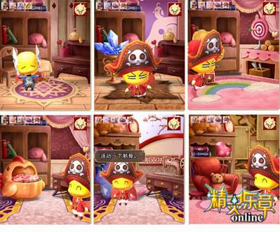 精灵小屋的开启非常方便,只要鼠标左键轻点右下角精灵宝石的图标即可。开启小屋后,第一映入眼帘的就是可爱的小精灵了。调皮的精灵会不断施展她的Q劲在小屋内欢呼跳跃,可是刚开启的小屋就像未装修的房间,家徒四壁。游戏中设置了许多道具供精灵的主人们对小屋进行“装修”。