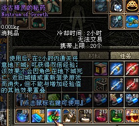 在闯关前服用远古精灵秘药,将使勇士们在最后获取通关奖励之时得到成倍的经验奖励。翻倍后的经验一定会让勇士们爽快之极,兴奋之极。因为秘药可以随时服用,所以大大增加了勇士们选择闯关时间的随意性。