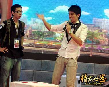 若要问Chinajoy台前谁最辛苦?答案非现场主持人莫属。历届Chinajoy都是对主持人嗓门和临场应变能力的最大考验。不同于正式晚会的主持风格,Chinajoy的现场主持人除了要聚集人气,更直接面对其他展台的声浪挑战,于是一些主持人选择了幽默的搞怪路线来吸引玩家的注意力。今年联众展台堪称“吴忠宪”和“矢野浩二”结合体的猥琐男主持无疑便是其中的佼佼者!
