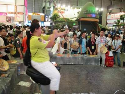 超炫的展馆布置、还原扣人心弦的骑马射天龙的原著游戏情节、精美的人物造型引起来无数观众前来围观……