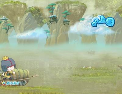 第一幅《QQ三国》壁纸勾勒出了一幅浪漫的风景画卷,碧波荡漾的湖面,远处重叠欺负的山丘,穿插着一个个精致典雅的亭子,四周弥散的薄薄无期,带来丝丝神秘和诱惑,白云朵朵,如梦似境,左下方一处的小渔船以及可爱的“三国”小兵形象,为整幅壁纸起到了画龙点睛的作用,在这炎炎夏季,看到这样的唯美“三国”壁纸,不禁倍生凉意。