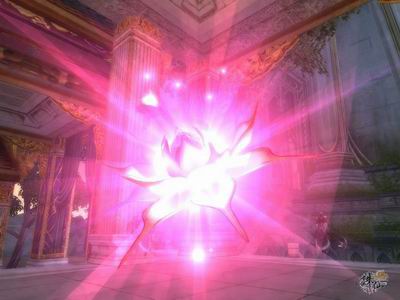 千媚莲——合欢派专用的法宝千媚莲绽放着耀眼璀璨的光芒,飘动时轻盈旋转,静立时百媚千娇。不动时便有万道霞光从花朵上发散出来,绚丽夺目。