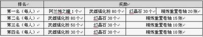 在第二届4V4 PK赛中,我们为每个服务器前四名的队伍准备了超级丰厚的大奖!稀有的阿兰姆之瞳、珍贵的武器强化粉以及幻晶石,还有绝版道具精炼重置卷轴!