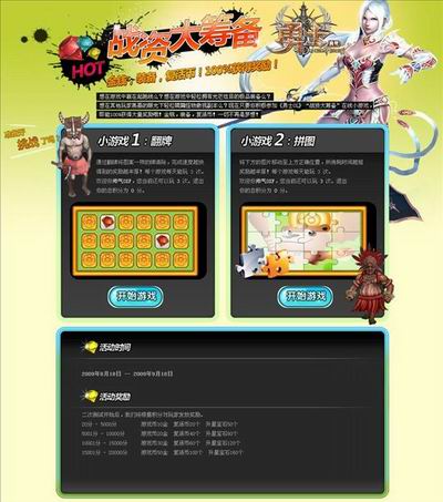 常言道:“好的开始可是成功的一半”。作为一位《勇士online》的FANS,此次的“战资大筹备”活动可是不容错过的绝好机会。且不论是翻牌游戏又或拼图游戏,同样简单上手同样趣味十足。最值得一提的是,虽然每个游戏玩家每天只能玩3次,但根据您参与活动成绩的优劣,所获得的积分奖励可是完全的不同噢!因而,为了未来更为舒适的冒险旅途、为了获得更多的奖励道具,各位大大可要好好加油咯!