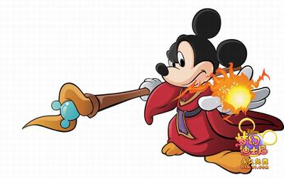 在反复对比老鼠在快乐与严肃、活动与安静时的不同表现,以及绘制了数千张动作不同的原图之后,《梦幻迪士尼》中的米老鼠形象动作才被逐步确定下来。在迪士尼动画中,米老鼠一直以智慧优雅的正面形象出镜,而在《梦幻迪士尼》的CG预告片中,它也依然保留着这样高贵万能的人物特点。作为奇幻大陆上创世魔法师的大弟子,它身着富有中国特色的大红色魔法师袍,手中挥舞着星形的魔法棒,当它降临在众人面前的时候,是如此地威严端庄。即使施展起技能来,也如同是中国古代武侠绝学“乾坤大挪移”版的飘逸与优雅:有力地举起魔法棒,念动咒语从天引下魔力,迸发出火花对敌人进行攻击,炫目的一阵光效过后,邪恶的黑暗力量就已消失殆尽,使观众们大呼过瘾。