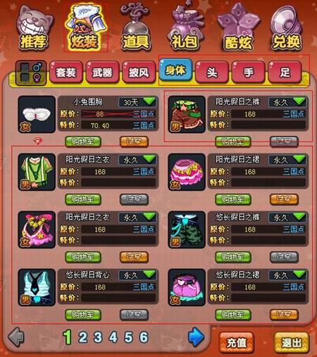 前不久QQ三国推出的假日系列炫装深受广大玩家的喜爱,款式新颖,有悠长假日炫装和阳光假日炫装,并且男女各有两套。最新单品也是丰富齐全,有动感耳麦、蛤蟆太阳镜、热力背心等等,玩家对服装的搭配更是可以达到多样化的效果。当然了,在这个炎热的夏季,谁不想清凉一下呢?特此三国专门推出“假日系列炫装”的优惠礼包!花少量的钱享受最实惠的炫装盛宴。这一切都会在游戏商城的中呈现,选中自己心仪的搭配么?享受浪漫的情怀就从这一刻开始!