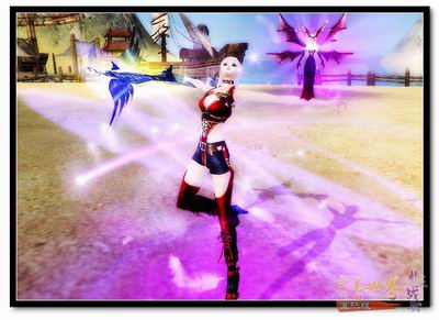 翼展技能,以翼之神力攻击周围8米内的所有敌人。都说羽芒PK要善于跑动,近身攻击是羽芒的大忌。不过这一招,可是为了让羽芒在被对手近身的关键时刻反击并脱离困境而设计的哦!技能释放时,紫色的光圈环绕全身,仿佛要用尽全身的力量一般,跳跃而起,与对手近身搏杀,颇有力度。