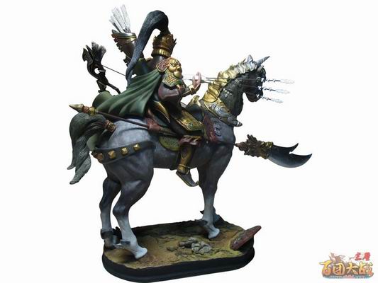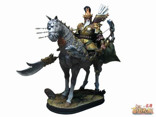 黄忠原为刘表手下,和刘磐一同镇守长沙。刘表死后,黄忠先归属曹操、后随刘备入西川。夺西川战斗中总是冲锋在前,奋勇杀敌,屡建奇功。黄忠领兵争夺汉中,定军山战役,率众亲斩杀曹军名将夏侯渊,夺取汉中。黄忠因功被升为后将军,与关羽、张飞、马超、并列上将。眼前的手办将黄忠的英勇表现的淋漓尽致,虽然身为老将,但是看那气势一点不减当年。