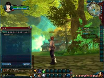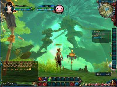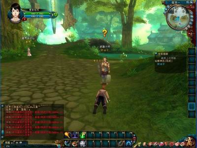 尽管17173评测员一再提示大家笔者的本本性能非常普通,但是进入游戏后还是被如临仙境的游戏场景所震撼。人物造型,衣着都体现的非常细腻,场景整体色调也维持在如同森林中晨曦时的那种青绿色,让人忍不住的发出一声“好漂亮”的惊讶声。