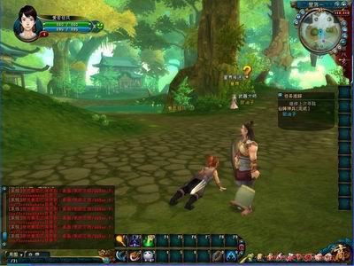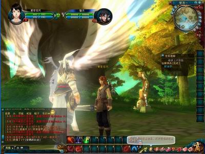 天空中两个仙人PK的雕塑让人热血沸腾,让我试着和悲伤的草偶决斗吧!等等,在这里爱若狂风发现了系统默认给玩家了两套技能,分别是远程的法术技能和近战的物理攻击技能,太强悍了,让我一个火球下去,再奋力劈下一刀,头上立刻冒出个经验+10的提示,够爽! 虽然没有取得什么战利品,但是成就感十足。接下来让我们了解一下游戏的各个组成部分。首先是人物属性,包括了人物装备栏,角色状态两部分,其中角色状态还可以看到更多属性和仙侠秀!仙侠秀的设定并不是网游中的先例,但是却重点突出了腾讯产品的特色,如同QQ秀般可以充分展示出玩家的个性,绝对是一个非常精彩的亮点。 人物包裹栏内容很丰富,包括了存放战利品的包裹栏,还有存放任务用品的包裹栏,还包括了宠物和坐骑的栏目。作为玩家日常使用的包裹栏承担了大部分玩家平时需要反复查看的内容。 根据笔者不完全统计,任务系统包括了青史任务,支线任务,门派人物与兴亡任务。任务内容庞大,经过17173评测员对玩家的小小调查发现,游戏只能通过做任务来赚钱,而且为了帮助玩家赚到足够的钱维持游戏开销,玩家必须通过做大量的任务来获得高额的奖励。在选择进入门派后,进行的门派任务可以给玩家带来巨量的经验,更为重要的是门派任务完成后可以获得道具太极宝典,这个可是好东西,通过它传送到神奇的太极地图,就可以看到自己的经验如同坐火箭一样蹭蹭忘上升!当然每天还有丰富的活动可以参加,玩家可以通过小地图中的活动宝典来查看。 17173评测员一路小跑见到了一个白色翅膀的仙人,那华丽的翅膀煽动了我的心,忍不住上去合影留念。 你很帅,翅膀送我吧!堕天:…… 我也有翅膀了!堕天:!