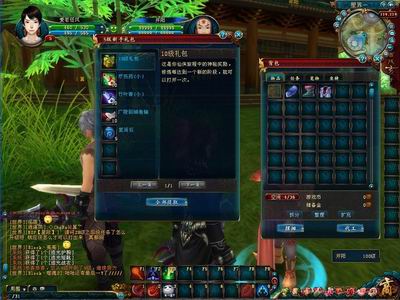 曙光就在眼前,看到了更多的玩家和我一起跑来跑去的,太激动了,终于找到大部队了。打开好友面板看一看,和QQ很像,没有操作上的障碍。再打开组队面板一看,和《天龙八部》相仿,熟悉的不得了。呵呵哈嘿,没有什么能难倒我的了! 如果说真的能难倒我的就只剩下钱的问题了,笔者乐哉哉的跑到武器店乡购买一把趁手的武器,才发现自己居然一个铜板都没有,难怪店老板要抬起傲慢的头看着我。不过却发现自己的包裹里有个小小的礼包,写着5级方能开启的字样。哈哈,这简直就是雪中送炭呀! 5级的衣服就性感得快**了,我听到了无数MM发出的尖叫声,欧耶!