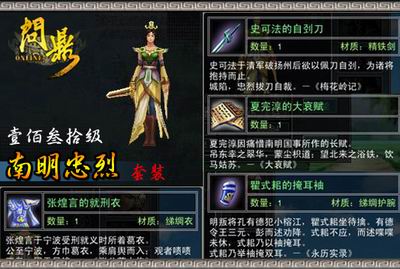 《问鼎》很注重对于游戏细节的把握,游戏中的任何一件物品都有其真实的历史记载。套装也同样如此,现在就与大家共同搜集极品套装的称号。