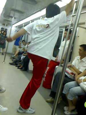 之前有媒体报道,“西单地铁功夫男”视频主角,其真实身份是搜狐畅游《刀剑英雄2》的“真功夫”网游推广员,他们之所以在公众场合大秀功夫,也是跟其工作性质有关。还有网友爆料,不但是在西单地铁站,这些“功夫男”还曾在前门、北京一号线地铁内等展示武技,另外,网上还流传着在广州、天津、武汉等地的网友拍到身着印有《刀剑英雄2》 logo T恤练武的“功夫男”。