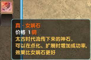 太古时代流传下来的神石,可以在点化、扩展时增加成功率,效果比女娲石更好。