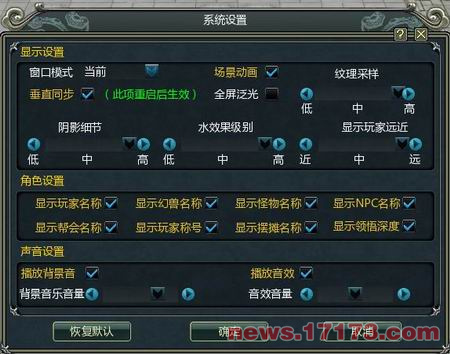 在系统设置界面可以选择播放或者关闭背景音乐。游戏音乐节奏欢快,听起来让人心情愉悦而舒畅,只在打怪时候的配音略显不足,整体还是不错的。