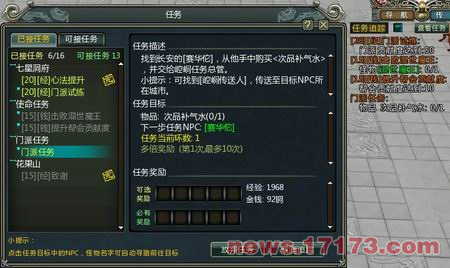 游戏的任务包括主线任务,剧情任务,师门任务,帮会任务,讨伐任务,天罚任务,押镖任务等,任务类型丰富多样。界面布局合理,清晰显示了当前任务,可接任务,任务完成方法,奖励等内容,右边还有任务追踪,可以自动寻路,非常方便。