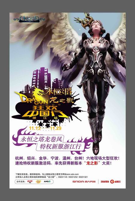 日前,大型3DMMO动作RPG《永恒之塔》的新版本被正式定名为“龙之影”。随后,盛大便正式宣布了为期半个月,范围覆盖浙江六个城市的“龙之影狂欢中国行”巡游推广活动。