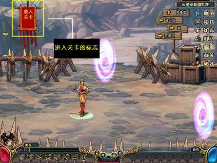 开始战斗前,请先选择您要进入的关卡,战斗准备区的地图上有着醒目的“进入关卡”的战旗标志,一眼就能看见!