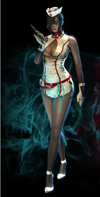 曾醉倒众人的护士装扮,如今遇上生化风波,演绎一段魅影征战。被感染的生化幽灵,化身成为娇艳的生化护士,顷刻间迷倒众生,玩家们还沉迷与其骄人身材的美梦中时,果断出击,将生化病毒迅速传播,成为每个玩家心中的梦魇。将惊恐的美丽传播到战场中每个玩家的内心,让人不寒而栗。