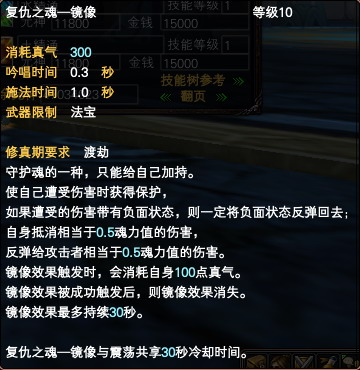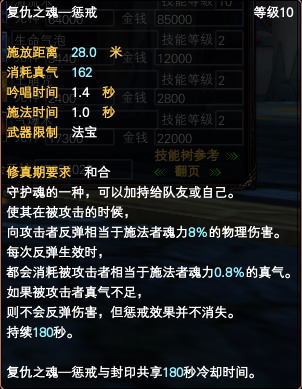 巫师的反击能力是非常强悍的。巫师从小就懂得“人若犯我,我必犯人”做人原则,在他们的技能招式上体现得极为明显。“复仇之魂-惩戒”技能是“守护魂”的一种,可以在自己或队友的身上使用。这个技能可以让玩家在被敌人攻击时,向攻击者反弹相当于施法者魂力8%的物理伤害。虽然使用此技能,会让玩家的损失0.8%的真气,可这个攻击带来的效应也是巨大的。玩家们碰到报复心理这样强悍的对手,真是不走运啊!