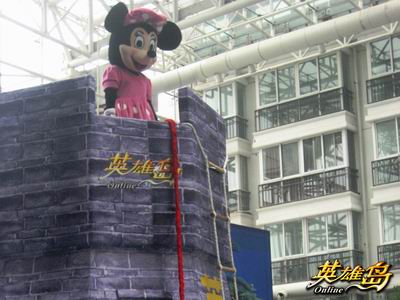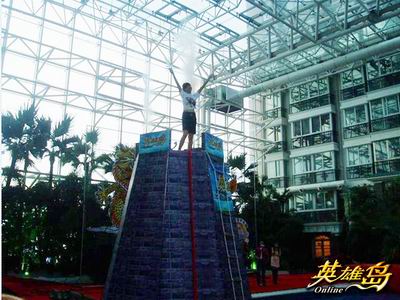 图中英雄岛顶上的MM是第一个成功的,她获得了由深圳网域颁发的500Q币的奖励,同时也获得了场内长时间的雷鸣掌声。