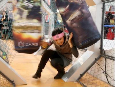 第二关“仙途修真路”来自仙侠网游《仙途》,走独木桥看似不难,然而御剑飞仙的同时,也要小心不要撞山。私下提醒,巨人和独木桥桥两边操纵障碍物的MM有约定,能把玩家弄下来加奖金,众位参赛者千万小心,不要贪恋美色成为牺牲品。