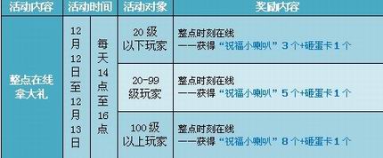 时间 大区 活动12月12日-12月13日13:00 – 17:00 全服 双倍经验
