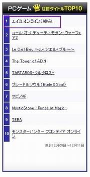国战网游《AIKA》荣登日本网游期待榜榜首