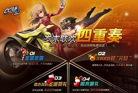 圣诞来袭、龙腾虎跃迎元旦、德古拉的圣诞贺礼、周末豪礼,S级赛车、百万Q币、极品宠物免费派送,圣诞好礼送不停,人人有份,大家欢乐!