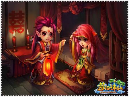 在满布红色喜字的洞房中,新娘的红盖头被缓缓掀起,盖头下显现出花弄影那张楚楚动人的脸庞,刹那间,与七杀四目相对。顿时,七杀不**得如痴如醉。“终于等到了呢。”花弄影娇笑的说道,笑容中妩媚尽生。一时间,所有的刚强都在这一刻化为绕指柔,直到地老天荒……一副温馨的家园画卷展现在我们眼前,这就是《梦幻诛仙》主角七杀和花弄影入驻《梦幻诛仙》“开心家园”第一天的幸福生活!