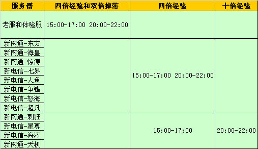 12月8日至12月11日四倍经验和双倍掉落、十倍经验的开启时间安排: