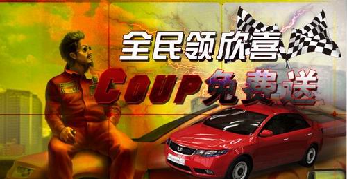 活动内容:注册并激活过《光线飞车》大区的玩家,在活动期内可以登陆活动页面,选择所要领取的大区后,免费领取一组CD-KEY,用CD-KEY到游戏中的车库兑换,即可获得一辆Coup.